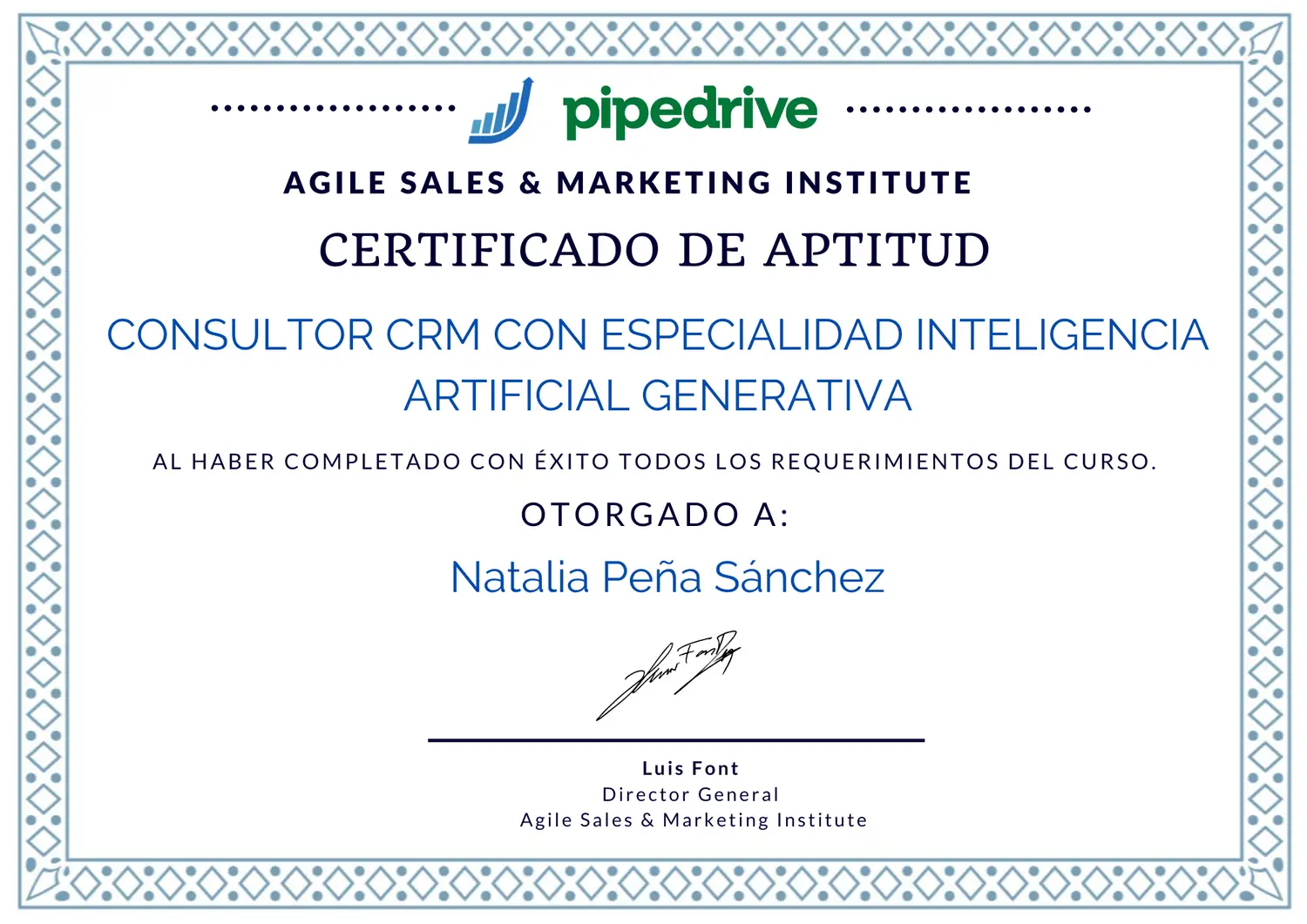 Pipedrive ayuda a las empresas a vender más, optimizando cada paso del proceso de ventas con su innovadora tecnología de IA. Además, en nuestro curso también aprenderás a utilizar ChatGPT para mejorar aún más tus estrategias de ventas y atención al cliente.